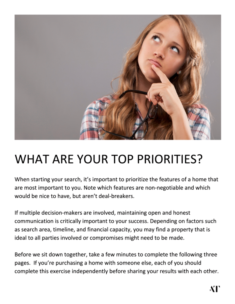 This worksheet helps you prioritize what’s most important across location, interior, and exterior preferences.